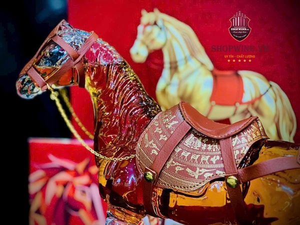 Điểm gây ấn tượng đầu tiên của rượu Long Mã Đại Việt chính là thiết kế chai thủy tinh hình tượng long mã – sinh vật huyền thoại kết hợp giữa sự mạnh mẽ của ngựa và uy nghi của rồng. Chai rượu được chế tác tỉ mỉ với chất liệu thủy tinh cao cấp trong suốt, bên trong rượu sóng sánh màu hổ phách ánh đỏ tạo nên vẻ đẹp huyền ảo, sang trọng. Chai không chỉ có công dụng chứa đựng rượu mà còn là vật phẩm trang trí độc đáo, xứng đáng trưng bày trong tủ rượu hay bàn tiếp khách.